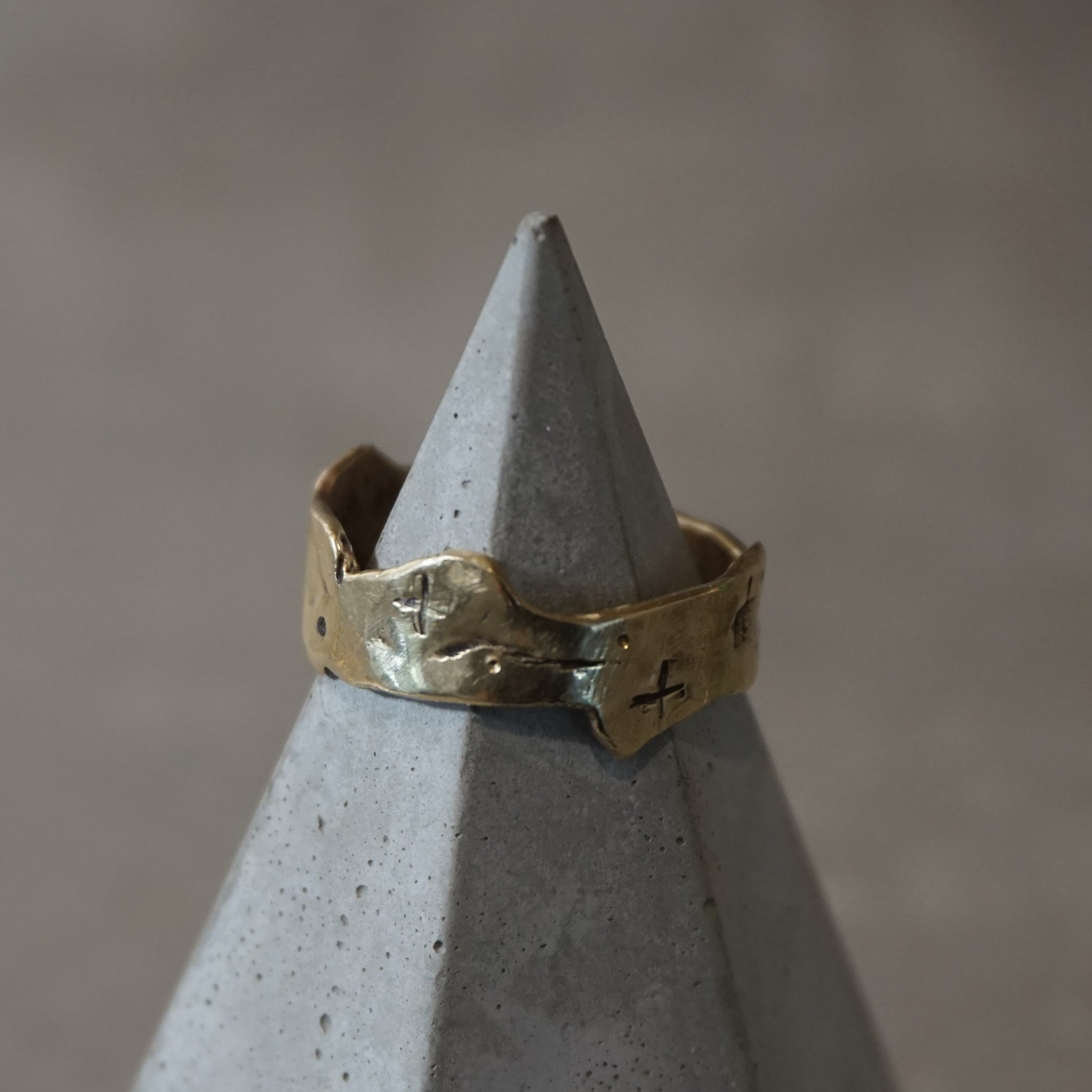 The Phoenix ring is a solid 9ct gold ring featuring an irregular forged band with heavy texture. This ring is great as a statement piece and is comfortable for everyday wear.