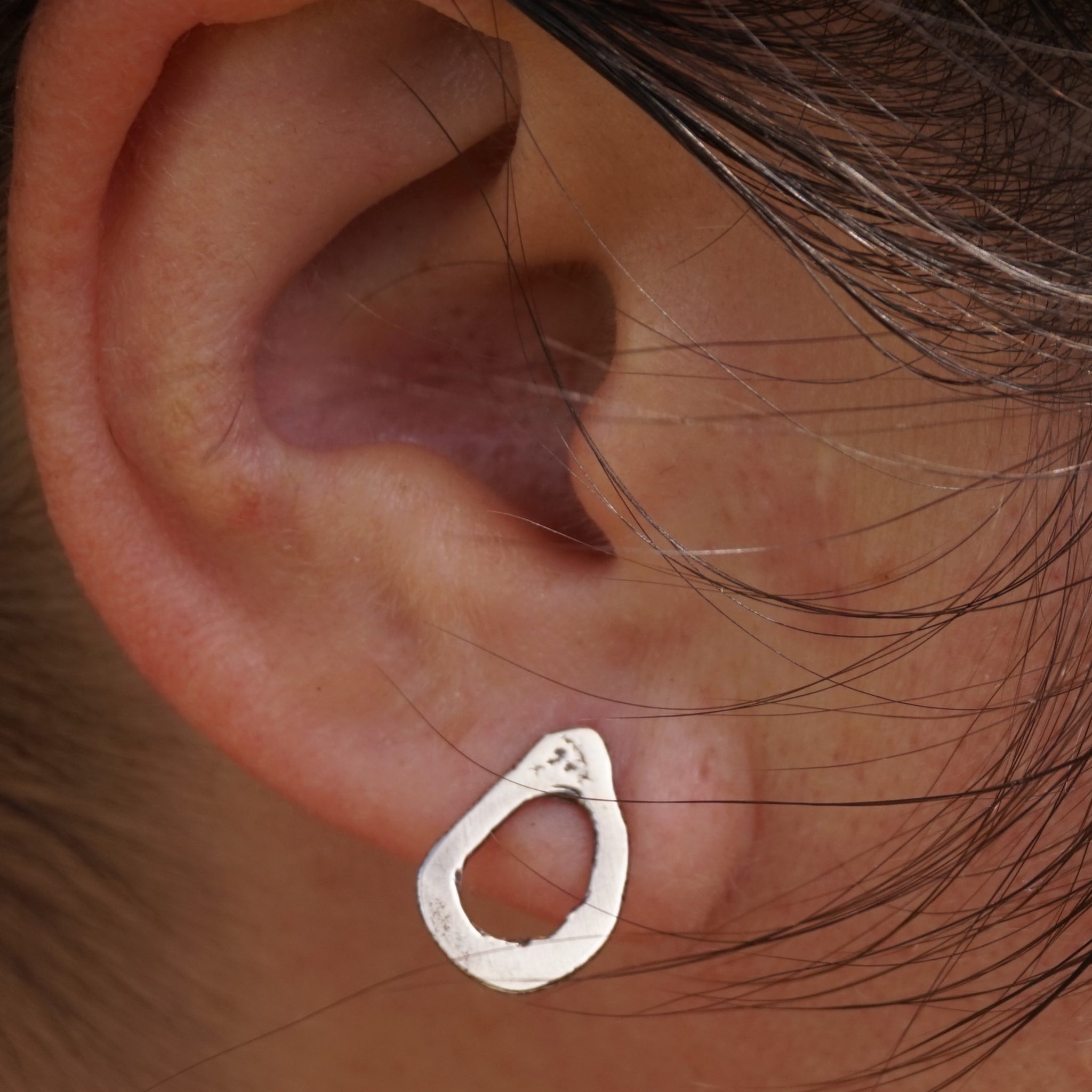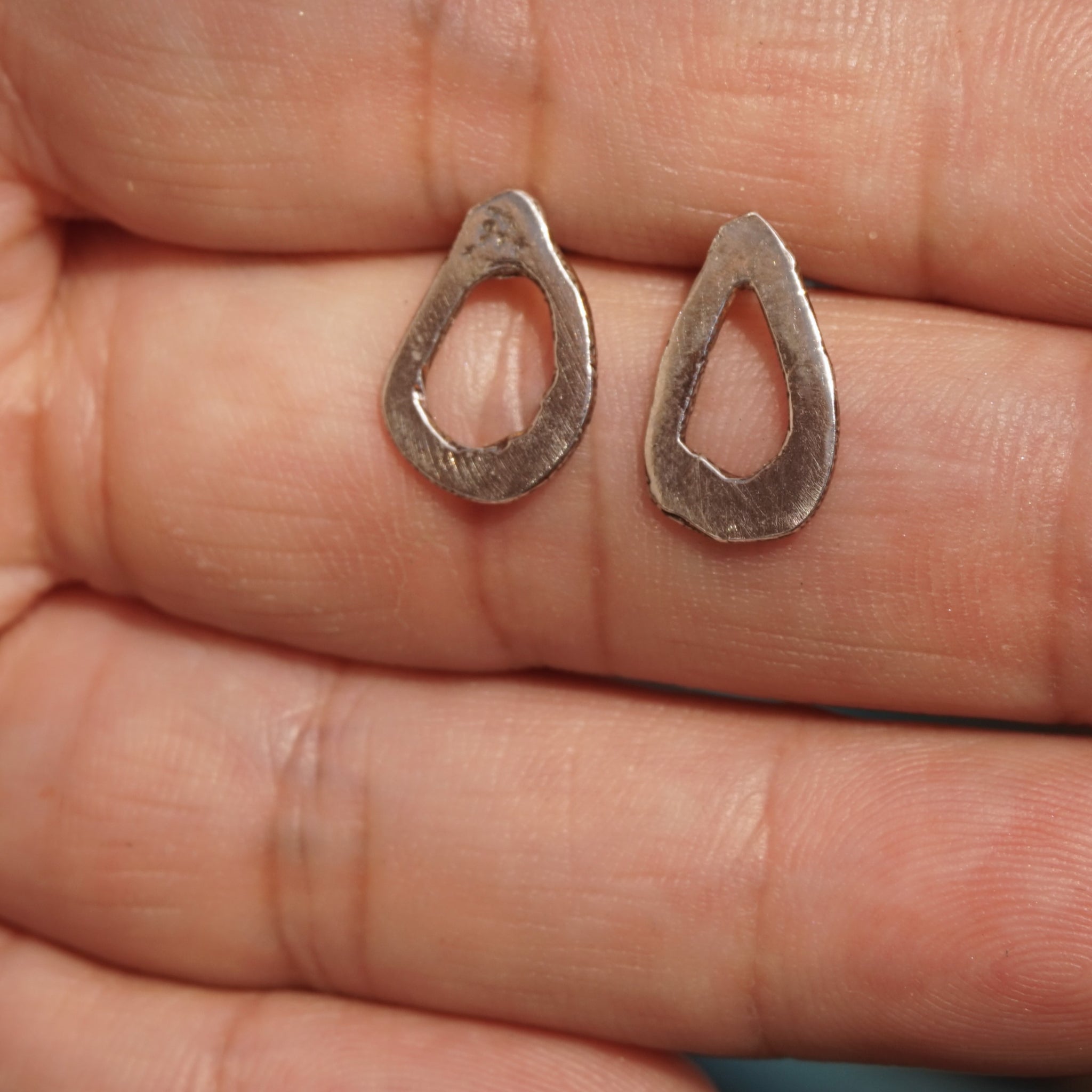 These demure rough-edged studs feature a small teardrop shaped hoop with a stud back. The front face is polished, to catch the light with your movement. Made of sterling silver, supplied with butterfly backs.